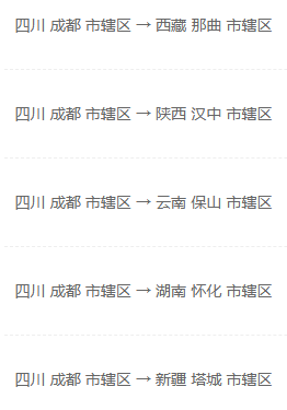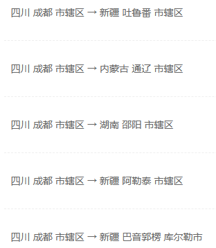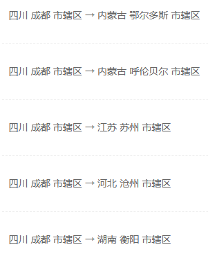 四川省成都市市辖区 内蒙古区通辽市市辖区